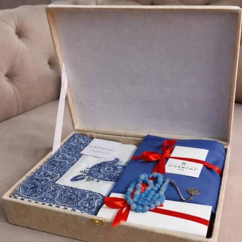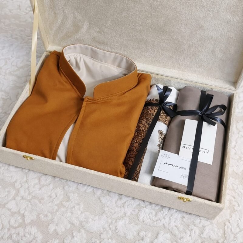 شماغ ديور أصلي بخامة فاخرة ونقشة راقية تعكس الذوق الخليجي الأصيل. عطر Dior Sauvage بحجم 100 مل، برائحة جذابة تدوم طويلًا وتعكس الحضور القوي. نظارة شمسية Dior بتصميم أنيق وعدسات عالية الجودة تحمي من الأشعة الضارة. صندوق فاخر يحمل شعار ديور، مزين بشريط أبيض أنيق وجاهز للإهداء الفوري.هدية رجالية من جيفنشي