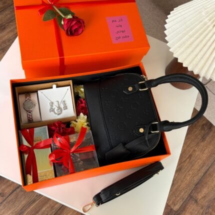 هدايا النساء للعيد 2026 للأهداء الفخم خيارات متنوعة للأهداء الفخم بوكس هدايا نسائية فخمة بالرياض يشمل شنطة تصميم لويس فتن مع طقم اكسسوارات وعطر .