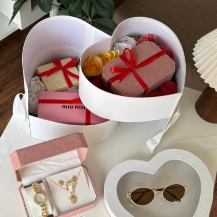 هدية نسائية فخمة للعيد مع توصيل مجاني بكس قلب دورين هدية عيد مع عطر وطقم ساعة ونظارة بخصم خاص 299 ريال بدل 400. توصيل مجاني سريع داخل السعودية.