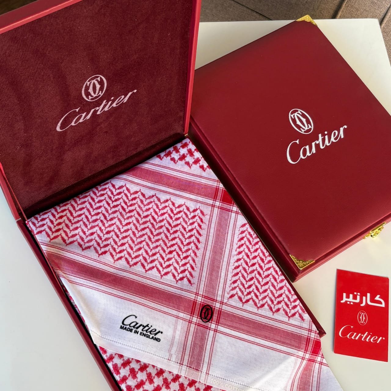 شماغ كارتير 2026 بخامة قطن فاخرة مع العلبة الأصلية والتغليف الراقي… هدية فيها هيبة وفخامة وتوصل له رسالة اهتمامك بدون كلام.