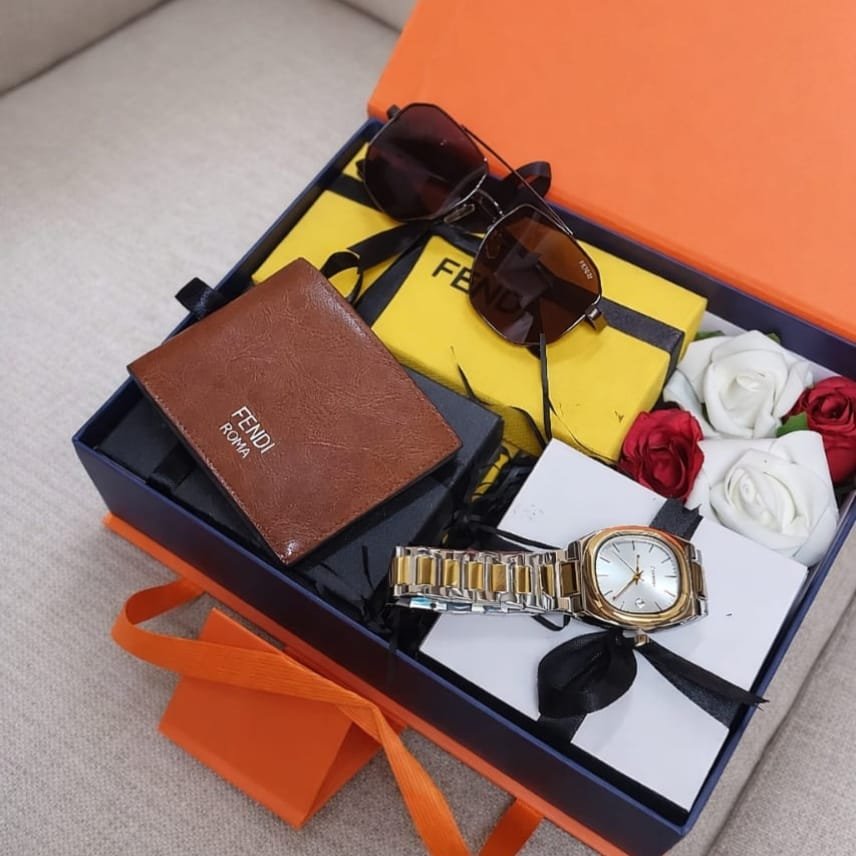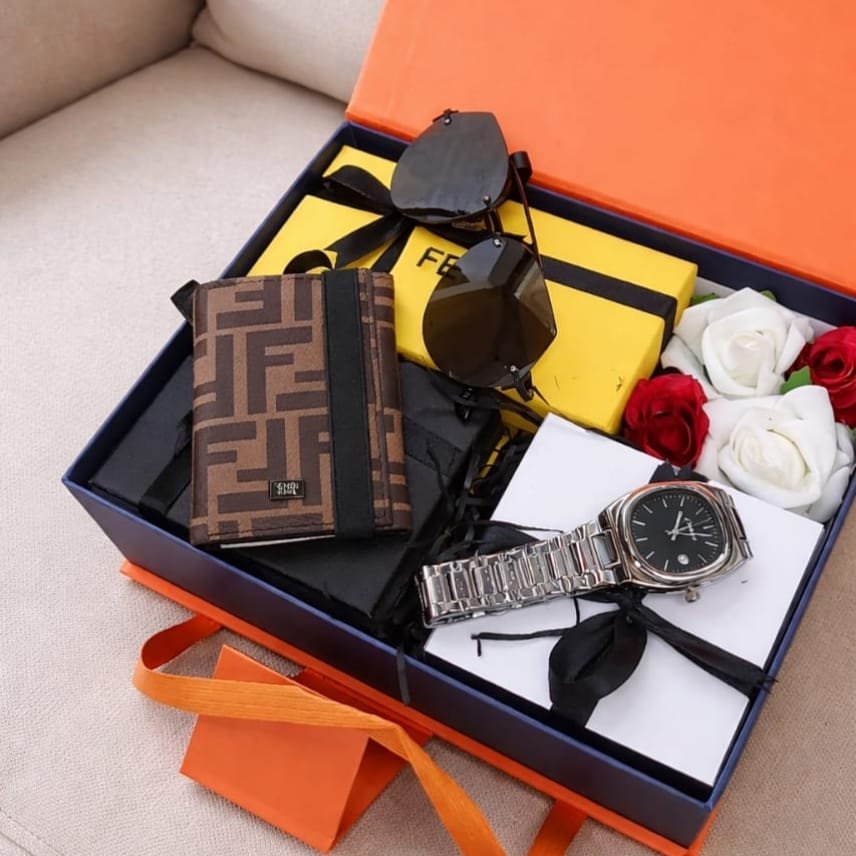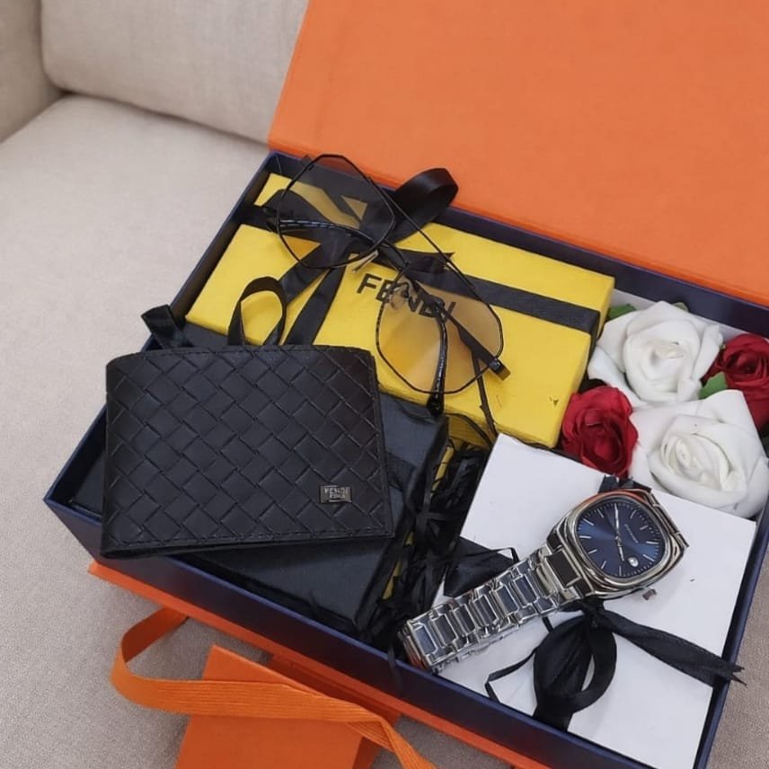طقم هدية عيد الحب > هدية رجالي فاخر يحتوي على ساعة، نظارة، ومحفظة بتغليف راقٍ. توصيل فوري داخل الرياض وشحن لجميع المناطق بسعر 330 ريال.